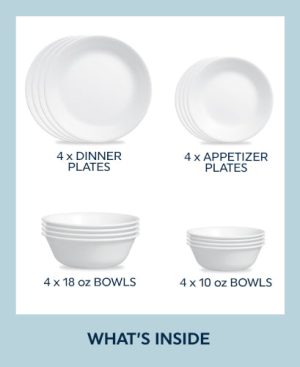 Corelle Winter Frost White 16-piece Mugless Dinnerware Set. Service for 4